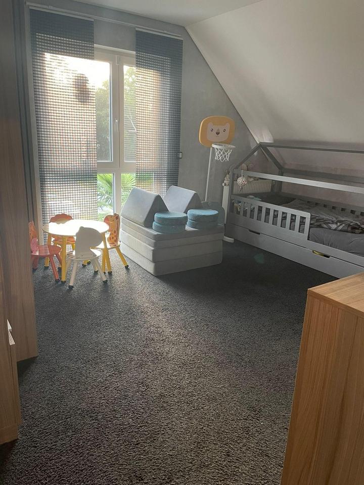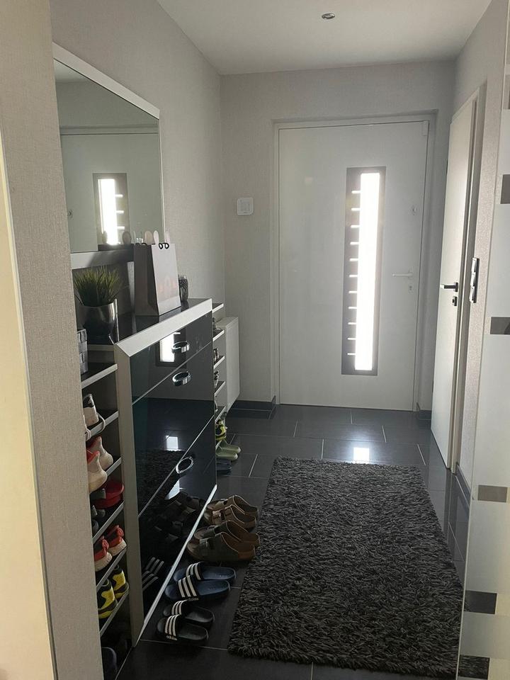 4,5 Zimmer, 1 Badezimmer mit Badewanne und Dusche, Gäste-WC, Terrasse, Garten, Garage (10m) und 3 Stellplätze. Fußbodenheizung im EG und Badezimmer mit zusätzlichem Handtuchheizkörper, weiße Innentüren, Gasheizung und Solar für Warmwasser, Photovoltaikanlage mit Speicher, Alarmanlage, 3-fach verglaste Kunststofffenster weiß mit abschließbaren Fenstergriffen, Fenster teils mit Fliegengitter, elektrisch betriebene Rollläden mit separater Funk-Fernbedienung, Klimaanlage in allen Schlafräumen, Einbauküche von Plana mit Granitarbeitsplatte und Einbaugeräten der Marke Siemens, Abstellraum mit Einbauschränken vom Schreiner angefertigt, Videosprechanlage im EG/OG, Überdachte Terrasse mit integriertem Sonnenschutz und Beleuchtung, Garten komplett eingezäunt mit Bewässerungsanlage, Beleuchtung am Zaun und im Boden, sowie Strahler mit Bewegungsmelder, Außenkamera und Zugang über ein seitliches Gartentor. Pool mit Wärmepumpe, Jacuzzi, Gartendusche mit Warmwasseranschluss.