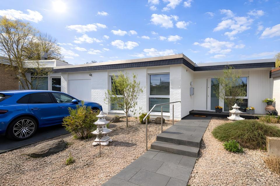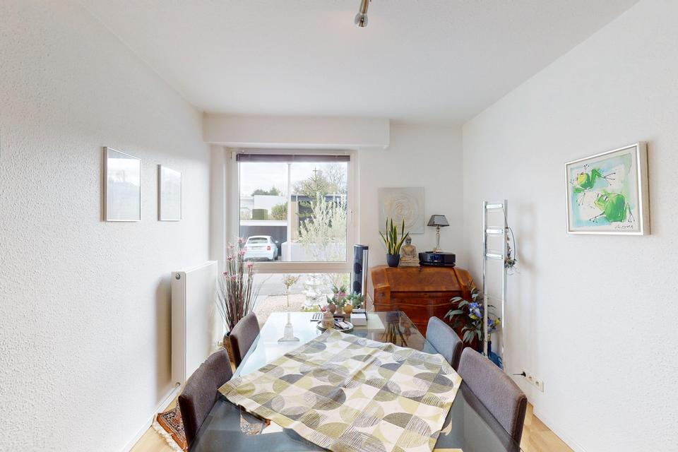 Zum Haus gehören eine integrierte Garage mit elektrischem Tor sowie zwei großzügige, gepflasterte Stellplätze. Der Garten ist erhöht angelegt und durch Zaun und Mauer abgeschirmt. Weitere Nutzflächen wie Waschküche, Trockenraum und Heizöllager sind vorhanden.