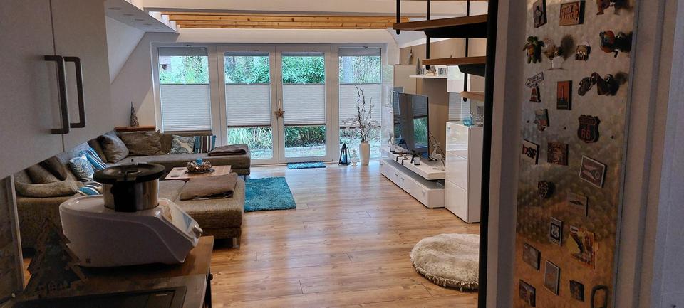 Die offene Bauweise sorgt für ein helles Raumgefühl, während hochwertige Materialien und die durchdachte Sanierung für ein angenehmes Wohnklima sorgen.