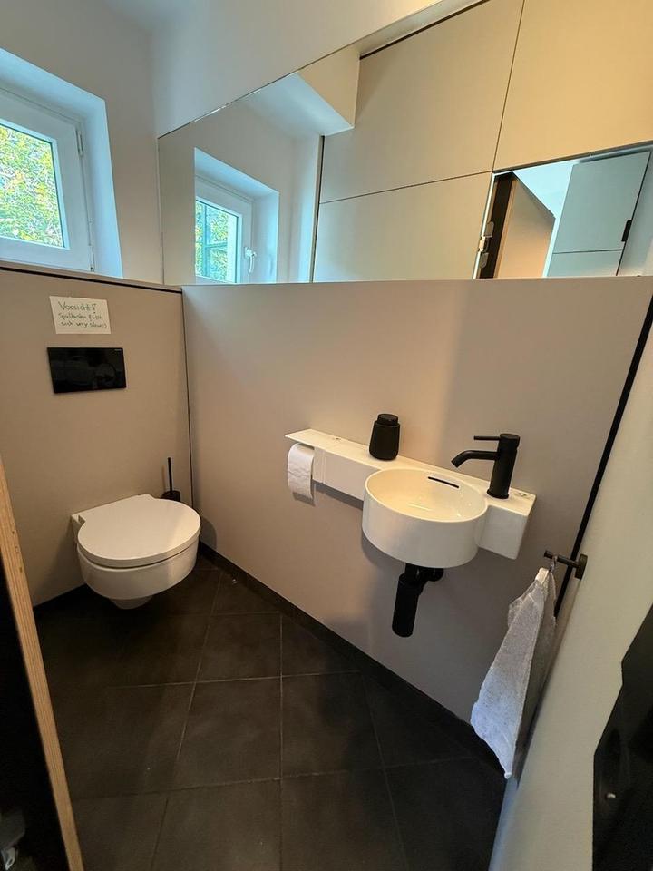 Ein separates Arbeitszimmer bietet den perfekten Rückzugsort für Homeoffice oder konzentriertes Arbeiten. Für Gäste steht ein zusätzliches modernes schickes WC zur Verfügung.