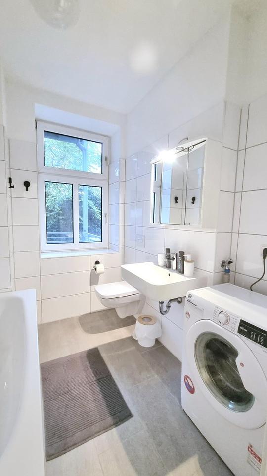 Das Tageslichtbad mit Fenster und Badewanne bietet zusätzlichen Komfort.