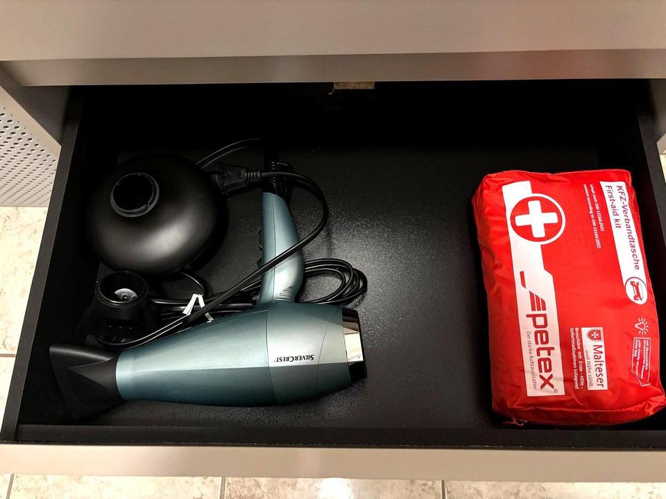 Bügeleisen, Bügelbrett, Staubsauger, Besen, Bodenwischer, Rauchmelder – alles vorhanden für eine sorgenfreie Nutzung