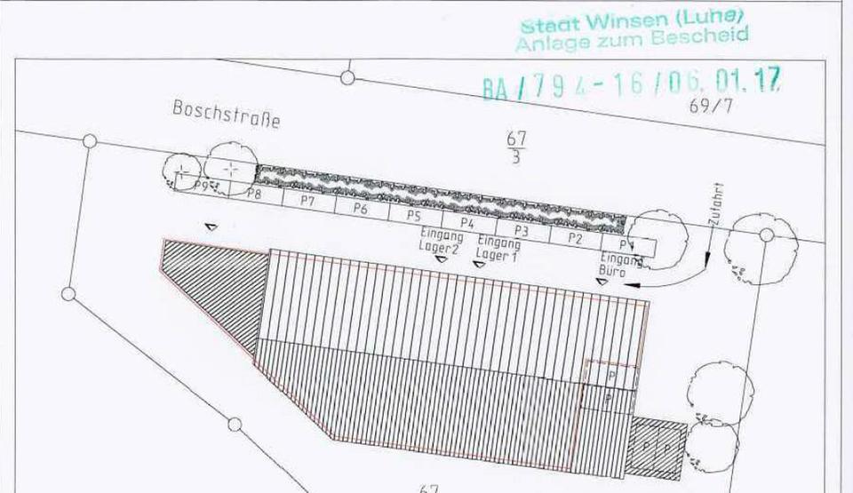 Die Adresse Boschstraße, 21423 Winsen (Luhe) liegt in einem reinen Gewerbegebiet im Osten der Stadt und ist konkret einem Handwerks-/Industrieumfeld zuzuordnen.