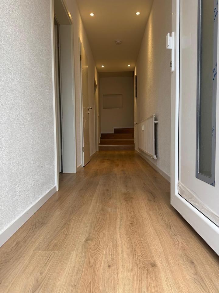 Bodenbelag: Laminat, Fliesen im Bad