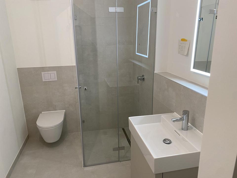 – Hochwertiges Bad inkl. Badeinbaumöbel (Waschtischunterschrank, beleuchteter Spiegel, usw.)