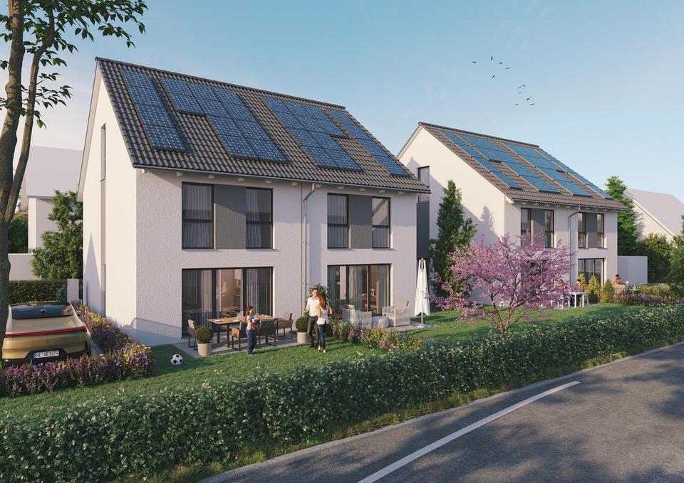 In Neuss-Vogelsang entstehen vier moderne Doppelhaushälften, die zeitgemäßes Wohnen mit hoher Energieeffizienz verbinden.