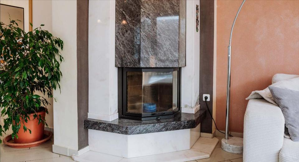 Mit Granit und Marmor eingefasster Kamin