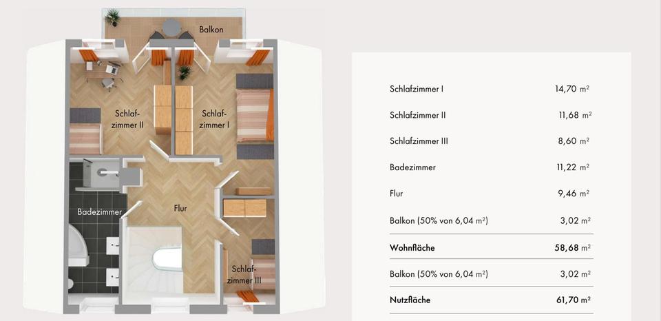 Balkonzugang im OG von zwei Zimmern aus