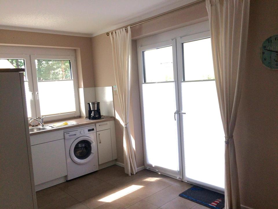Diese 73 Quadratmeter große Erdgeschosswohnung bietet Ihnen ein Zuhause fernab des Alltagsstresses. Der offene Wohnbereich, der die modern ausgestattete Küche mit dem gemütlichen Wohnzimmer verbindet, lädt zum Verweilen ein. Hier finden Sie alle Annehmlichkeiten, die Sie in einer komplett eingerichteten Küche benötigen: ein Ceranfeld, einen Backofen, eine Spülmaschine, eine Waschmaschine, eine Mikrowelle, eine Kaffeemaschine, einen Toaster sowie einen Kühlschrank mit Gefrierfach. Eine separate Sitzecke bietet den idealen Ort für ein entspanntes Frühstück, während der Kaminofen im Wohnzimmer für wohlige Wärme und eine behagliche Atmosphäre sorgt. Vom stilvoll eingerichteten Wohnzimmer aus gelangen Sie direkt auf die großzügige Terrasse mit Zugang einer kleinen Rasenfläche.