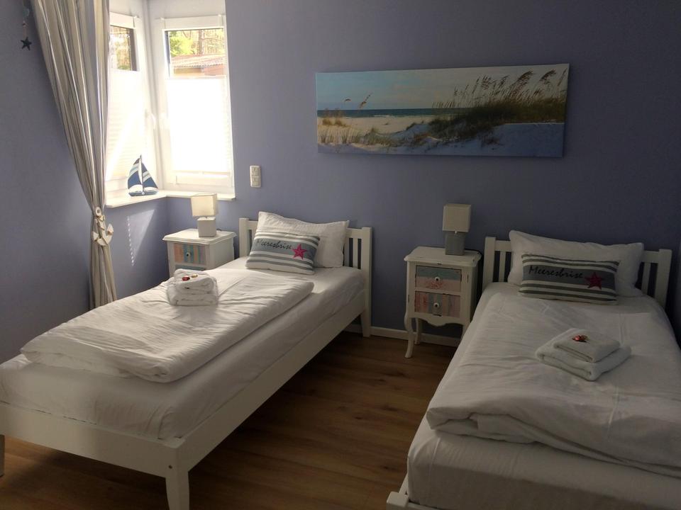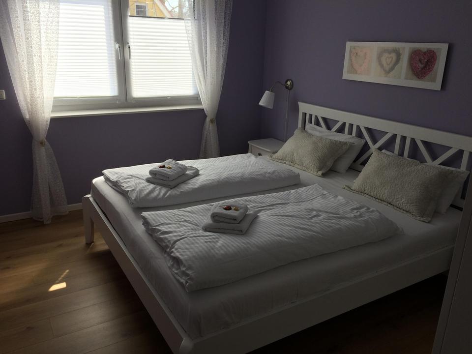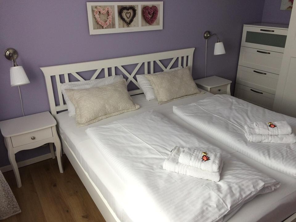 Die Wohnung verfügt über zwei Schlafzimmer. Das Schlafzimmer ist mit einem Doppelbett 180×200 mit verstellbaren Lattenrost ausgestattet zusätzlich befindet sich ein zweiter Fernseher. Das zweite Schlafzimmer ist mit zwei Einzelbetten 90×190 eingerichtet. Das helle Badezimmer mit bodentiefer Dusche rundet das Angebot ab und sorgt für einen angenehmen Start in den Tag.