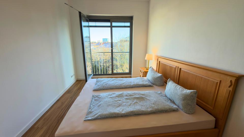 Die Wohnung verfügt über großzügige Fensterfronten, die für eine helle und offene Wohnatmosphäre sorgen. Eine Fußbodenheizung bietet angenehmen Wohnkomfort in allen Wohnbereichen. Die private Terrasse mit freiem Spreeblick hat eine Größe von ca. 12 m².