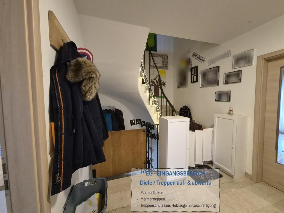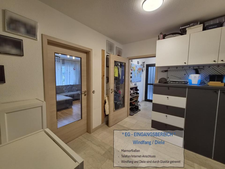 Zwischen Garage und Eingangstür befindet sich ein überdachter Vorgang, welcher als zusätzlicher Stau- und Vorratsplatz von uns genutzt wurde. (zum Beispiel für Getränke)