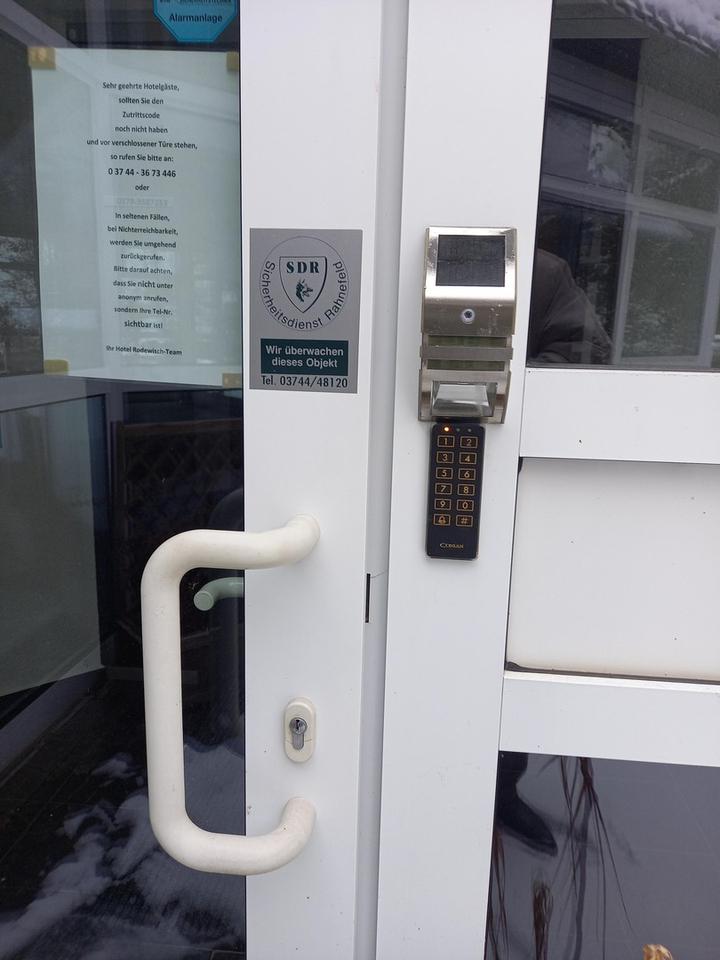 – moderne elektronische „Check in“ Schließanlage. Mittels Eingabe eines Codes gelangen die Gäste ohne Personal in das Hotel, beispielsweise nachts.