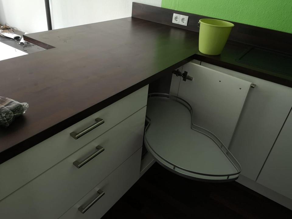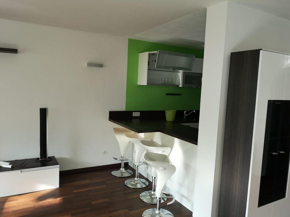 Die offen gestaltete und voll ausgestattete Einbauküche aus dem Jahr 2010 fügt sich harmonisch in den Wohnbereich ein. Sie überzeugt sowohl optisch als auch funktional und verfügt unter anderem über ein exklusives Teppan-Yaki-Kochfeld, das besonders anspruchsvollen Hobbyköchen vielseitige Möglichkeiten eröffnet.