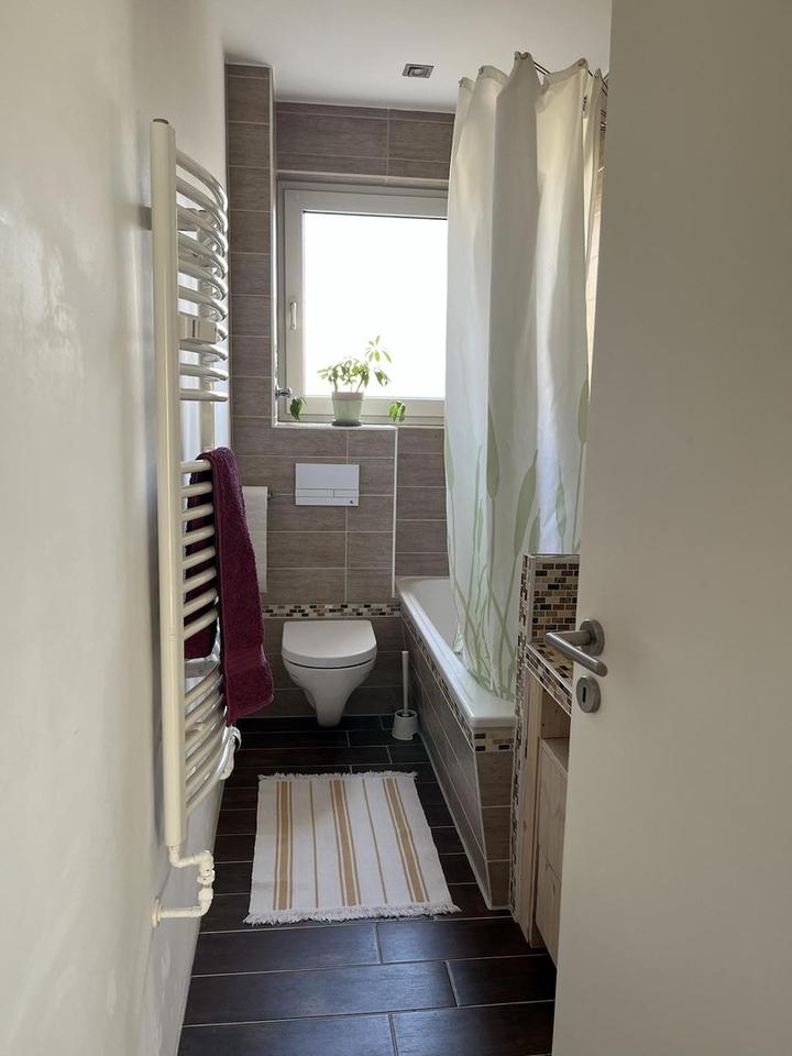 Bäder: Tageslichtbad mit Badewanne, Handtuchhalter-Heizung, modernisiert ca. 2012 / Duschbad (2015) mit bodentiefer Glasdusche mit Regendusche, Natursteinfliesen, Handtuchhalter-Heizung, Abluftanlage