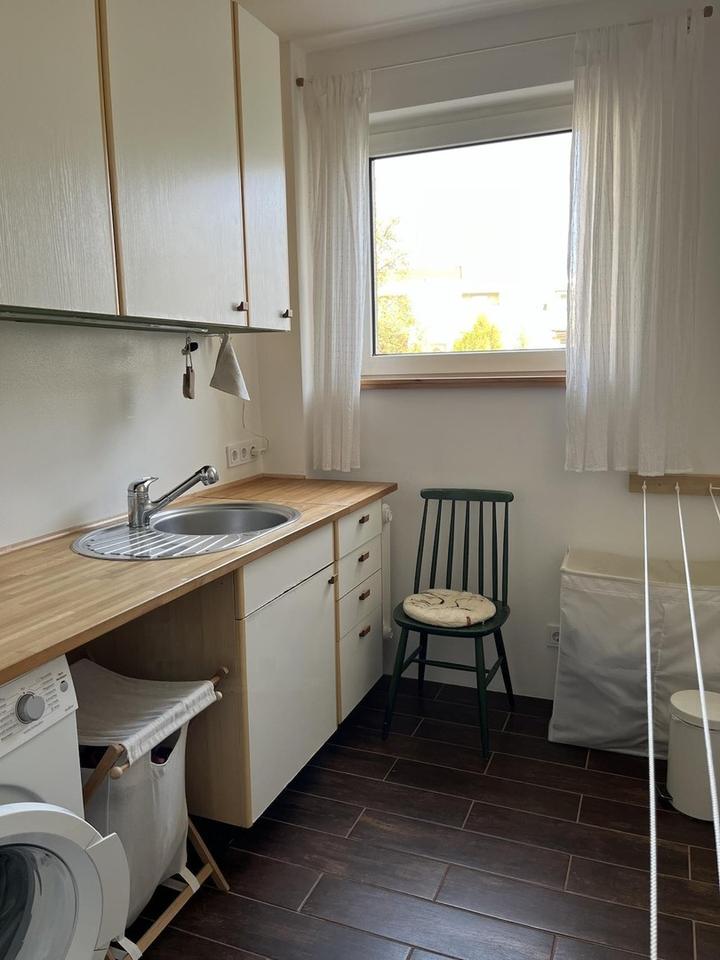 Ein Hauswirtschaftsraum mit eingebauter Küchenzeile und Waschbecken bietet zusätzlichen Komfort im Alltag.