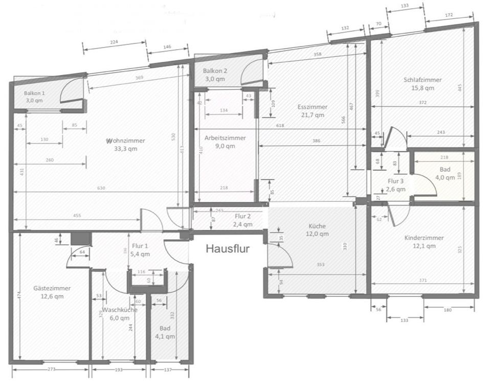 Bis auf das Duschbad verfügen alle Zimmer der Wohnung über Tageslicht. Während die Bäder und der Hauswirtschaftsraum gefliest sind, verfügen alle anderen Zimmer und die Flure über edles Echtholzparkett aus Raucheiche.
