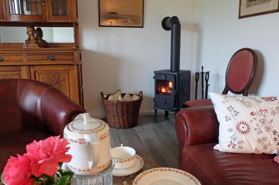 Fertig möbliert mit eingerichteter Küche, Hauswirtschaftsraum mit Waschmaschine, Trockner, keine Schwellen, EG-Bad mit Dusch-Sitz, Bad im OG mit Whirlpool, Sauna im Nebengebäude, Breitband-Internetanschluss mit Glasfasertechnologie, Morsø Holzofen, Wärmepumpe (Wolf-Technik aus Horstedt) mit Erdsondenbohrungen für die Fußboden-Heizung des Hauses sowie einer Luftwärmepumpe für Brauchwasser. Energie vom Dach mit einer 5kWp Photovoltaikanlage. Gesundes Wohnklima. Bedingt barrierefrei, Nichtraucher.