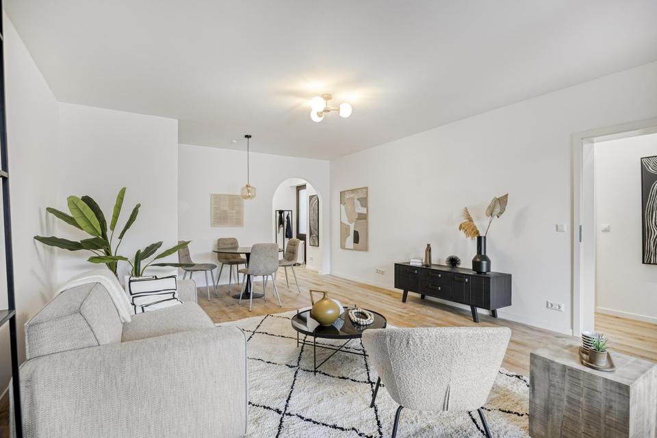 In den Wohnräumen wurde hochwertiges Parkett verlegt, während Bad und Küche modern gefliest sind.