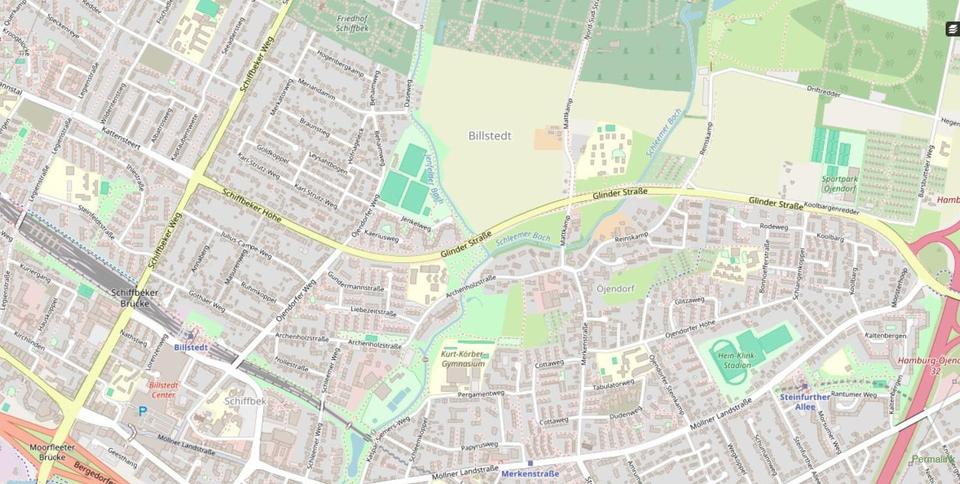 Billstedt liegt im Osten von Hamburg im Bezirk Mitte. Die Immobilie befindet sich in einer ruhigen Wohnstraße in der Nähe zu mehreren Parkanlagen (Schleemer Park, Öjendorfer Park, Boberger Dünen), die zum Entspannen und Verweilen einladen. In der Nachbarschaft findet sich eine Mischung aus Einfamilienhäusern und kleinen Wohnanlagen.
