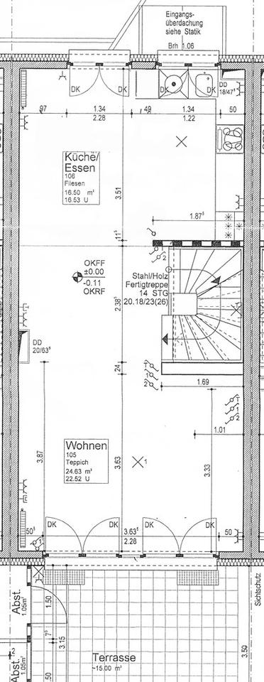 • Durch die überdachte Haustür betreten Sie den gefliesten Eingangsbereich mit Windfang, der ausreichend Platz für eine Garderobe bietet.