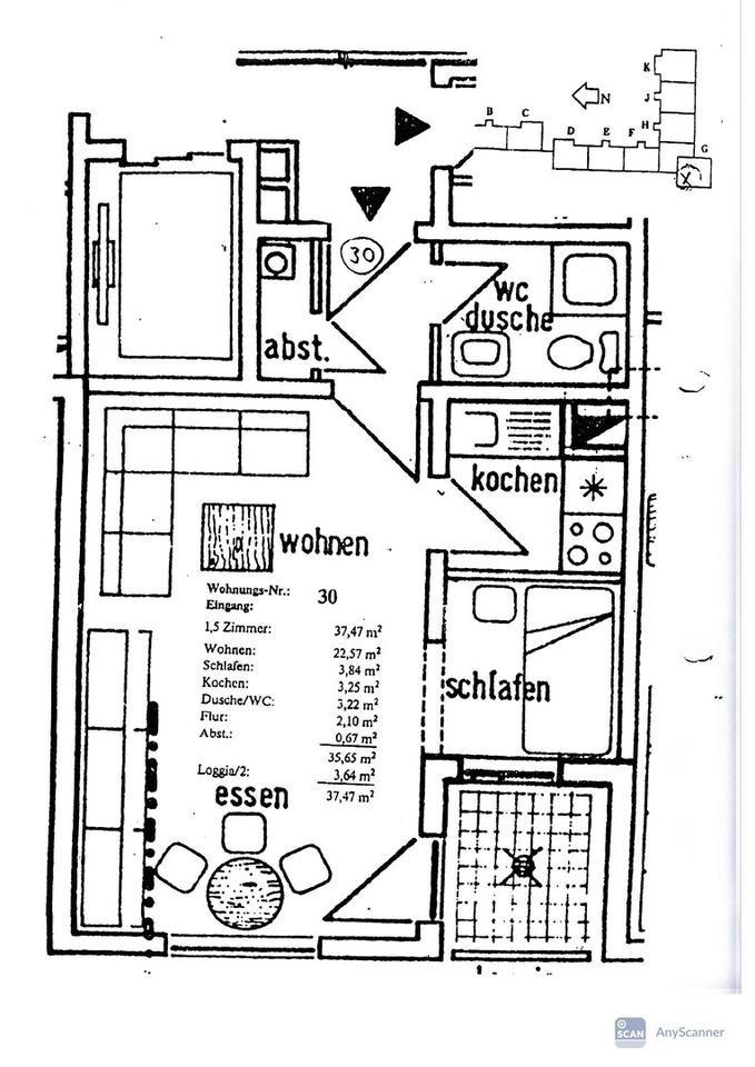 •Wohnfläche: ca. 37,5 m² (inkl. 50 % Loggia-Anteil)