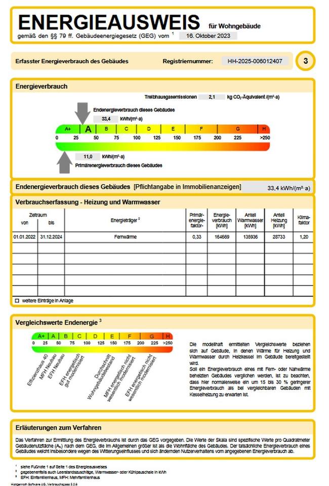 Endenergiebedarf: 33 kWh/(m²*a)