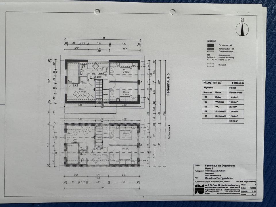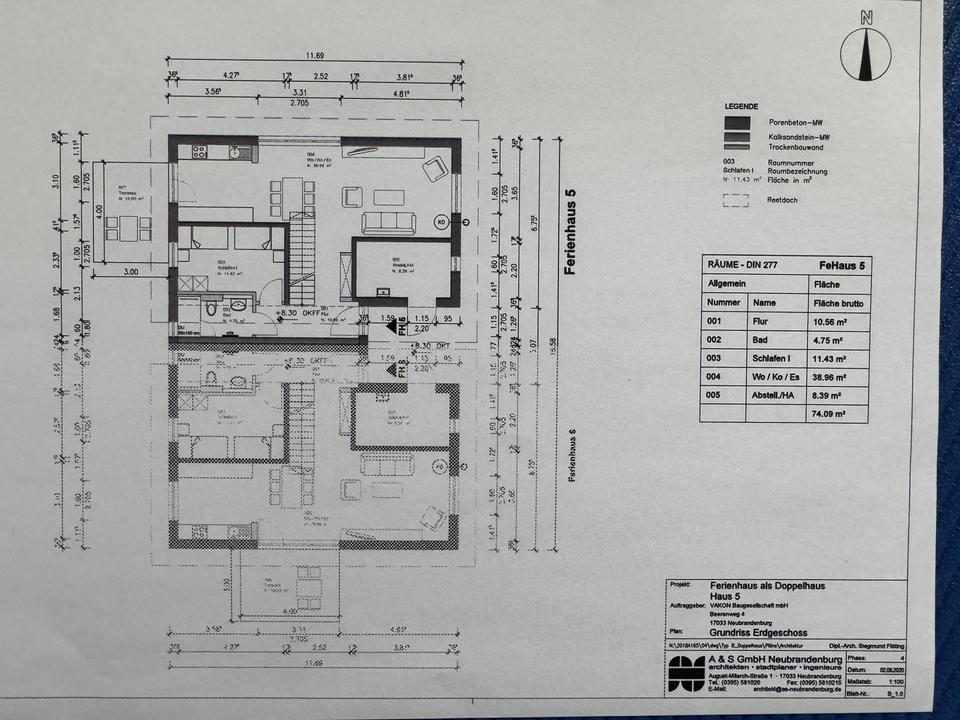 Bauweise & Dach: Massive Bauart (EG + ausgebautes DG), ohne Keller. Reetgedecktes Satteldach in zimmermannsmäßiger Holzkonstruktion (zweischaliger Aufbau mit Luftschicht); Dachentwässerung/Versickerung gemäß Planung.