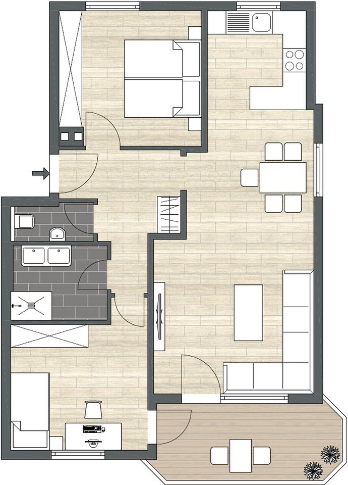 Das Highlight: Ihr sonniger Balkon. Ob Frühstück in der Morgensonne, ein gutes Buch am Nachmittag oder ein Glas Wein in den warmen Abendstunden – hier wird der Sommer Teil Ihres Zuhauses.