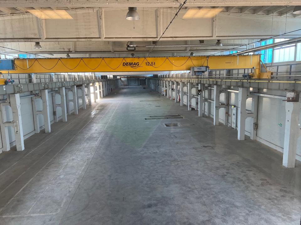 4 ebenerdige Einfahrtstore / Halle ist beheizbar / 2 Brückenkräne / hohe Stromanschluss 2 x 630 kVA und mehr durch diverse Trafos gewährleistet / Druckluftanschlüsse vorhanden.
