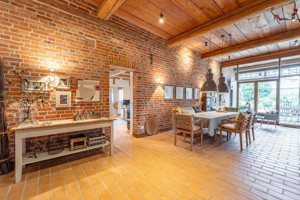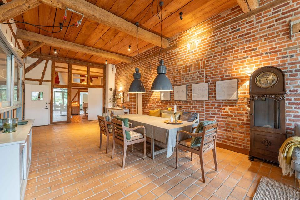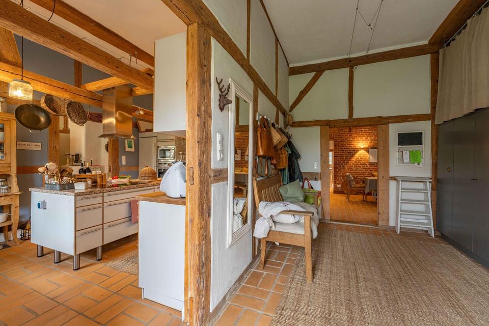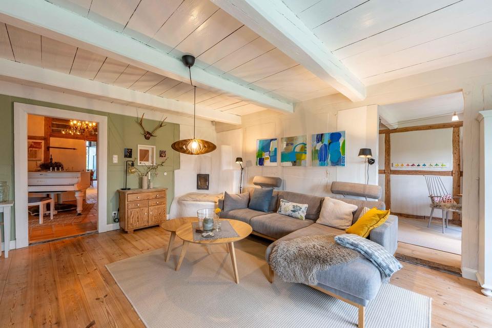 Das eindrucksvolle Reetdachanwesen ist das Haupthaus einer alten Hofstelle und liegt zurückliegend an einer Stichstraße in Beschendorf. Die in Ostholstein befindliche Gemeinde zählt 542 Einwohner und hat mit der freiwilligen Feuerwehr, einem Sportverein und anderen Gemeinschaften ein intaktes Dorfleben.