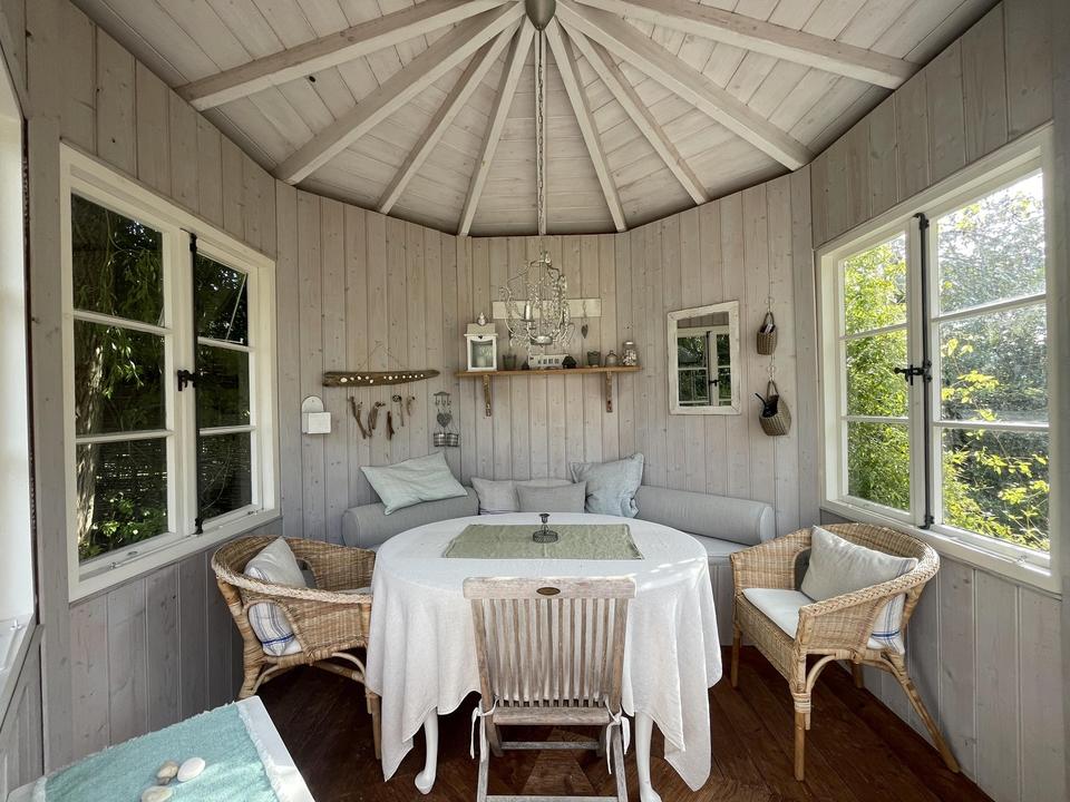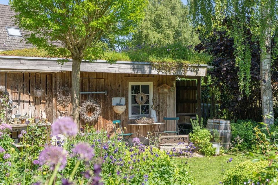 Außer dem Haupthaus erwerben Sie ein Gartenhaus mit Gartenküche welches im Sommer selbst bei Regen zum draußen essen einlädt. Einen wunderschönen Pavillon, der selbst im Frühling und im Herbst ein gemütliches Kaffeetrinken gestattet. Einen großen Carport für 2 Autos mit Gründach, einen Schuppen für Gartengeräte und Fahrräder, ebenfalls mit Gründach und einen großen Schuppen zur variablen Verwendung.