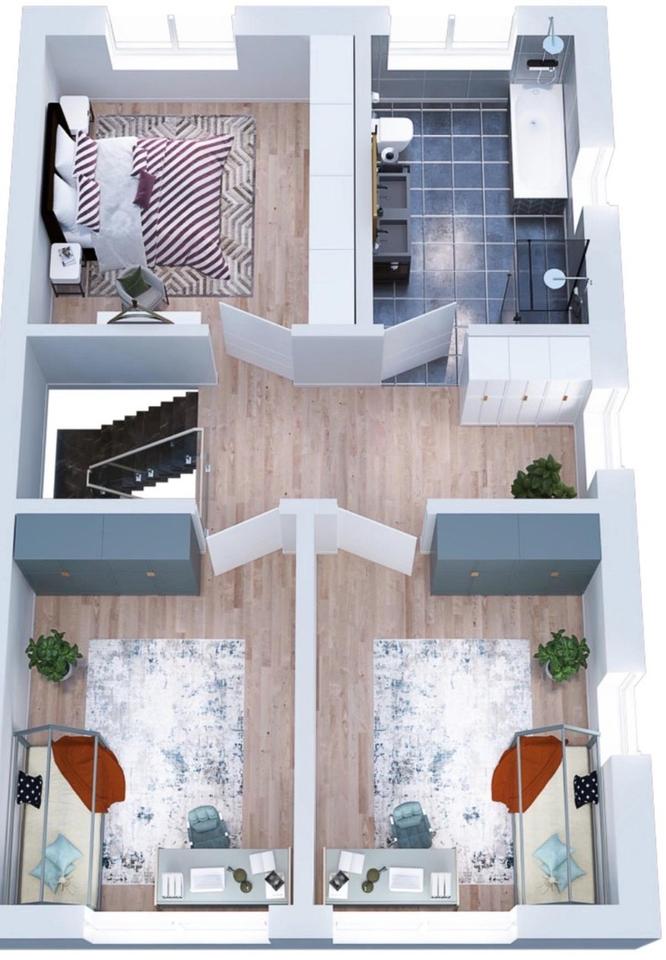 Visualisierungen zeigen den geplanten Endzustand. Besichtigungen im aktuellen Bauzustand möglich.