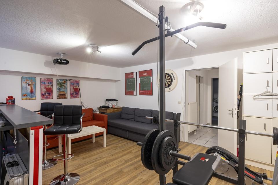 Platz für Ihre Hobbys finden Sie im großen Kellerraum, der aktuell mit einer Bar und Fitnessgeräten ausgestattet ist. Neben diesem Raum befinden sich im Keller noch eine die Waschküche mit ausreichend Platz auch für Ihre Vorräte, ein kleiner Werkstatt- und der Heizungsraum.