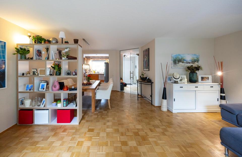 Die Diele ist mit einem Einbauschrank ausgestattet und bietet weiteren Platz für z.B. eine Garderobe. Von hier aus haben Sie Zugang zum Gäste WC und Treppenhaus.