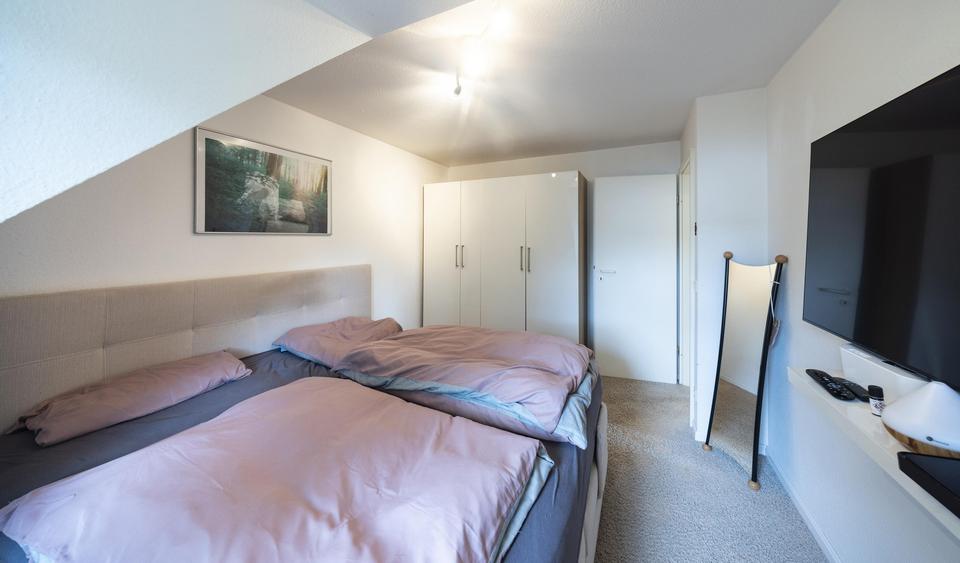 Im Dachgeschoss erwartet Sie ein weiterer sehr schöner Raum mit angrenzendem Duschbad, das ebenfalls hell gefliest ist.