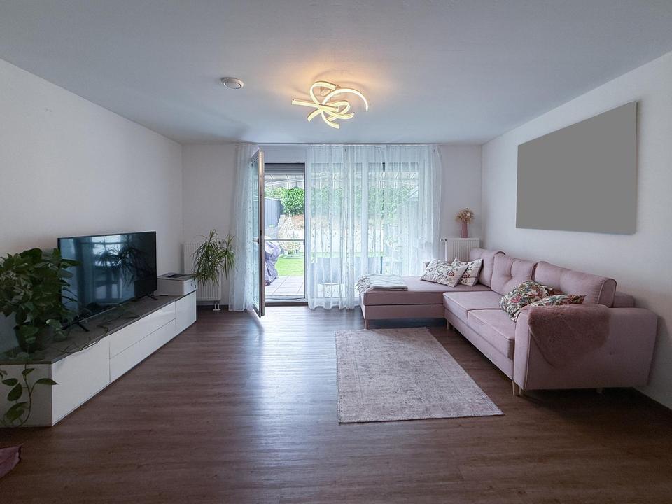 – Heller Wohn-Essbereich mit Zugang zur Terrasse und pflegeleichtem Garten