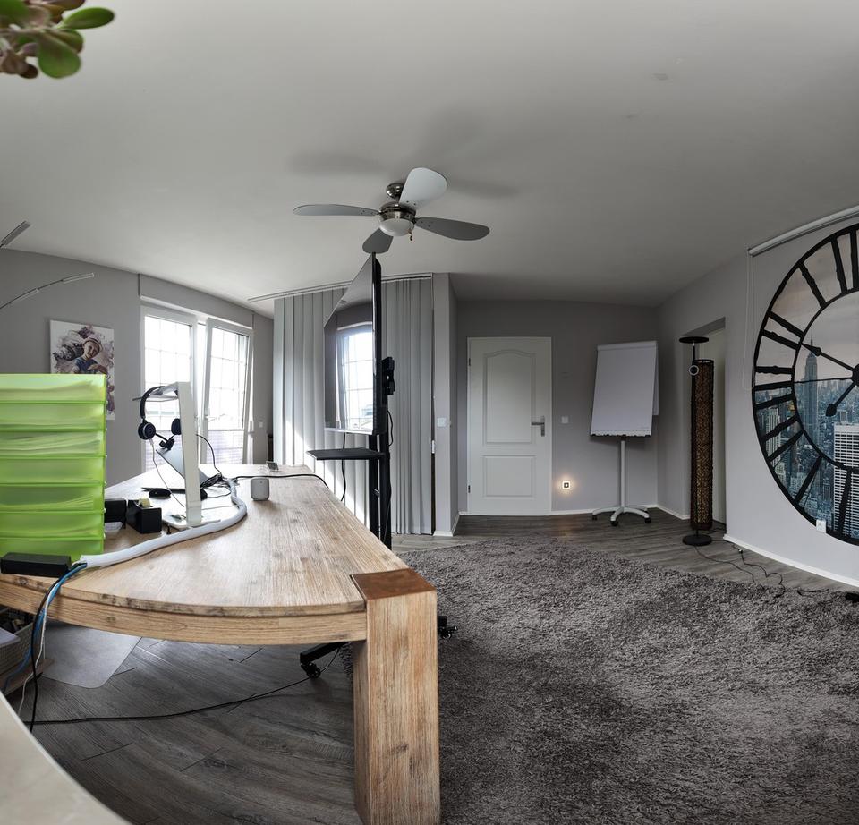 Durch die besondere Dachkonstruktion (Hamburger Dach) gibt es im Obergeschoß keine Dachschrägen.