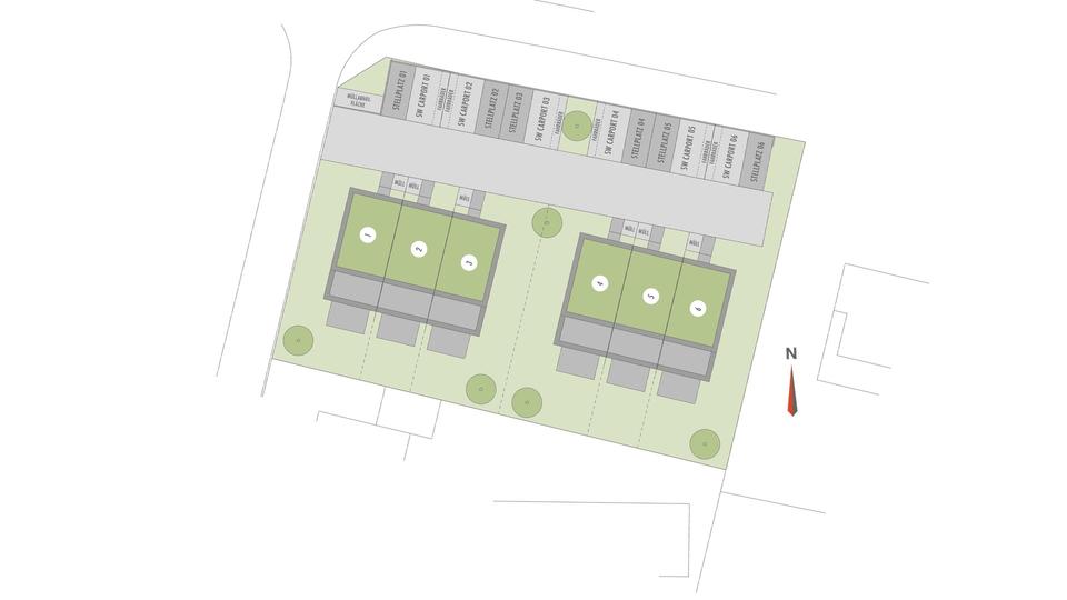 •2 Stellplätze pro Haus (einer optional mit Carport)