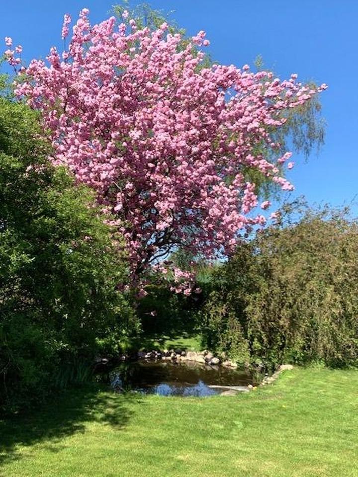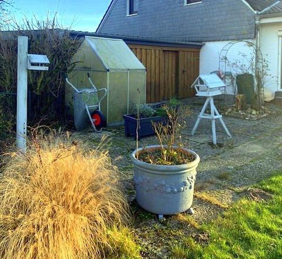 Neben dem Haus finden im soliden Doppel-Carport mit Holzlager-möglichkeiten zwei Pkw und Fahrräder Platz. An seiner Rückseite im Gartenbereich, der durch eine massive Tür auch vom Carport erreichbar ist, ist ein geräumiger Außenabstellraum angegliedert. Der schöne, eingewachsene Garten bietet reichlich Raum für eine individuelle kreative Gestaltung, was die Rosenlaube als charmanter Freisitz und der kleine Gartenteich bereits erkennen lassen. Mit nur einem direkten Nachbarn lebt man dank der angrenzenden Felder und Wiesen mitten im Grünen und kann in vollkommener Privatsphäre den Kindern beim Spielen zusehen oder einfach die Ruhe genießen. Die Hauptterrasse liegt blickgeschützt vor dem attraktiven Anbau. Über die Seitenterrasse mit einem kleinen Gewächshaus betritt man den Nutzgarten mit seinem schönen, alten Baumbestand.