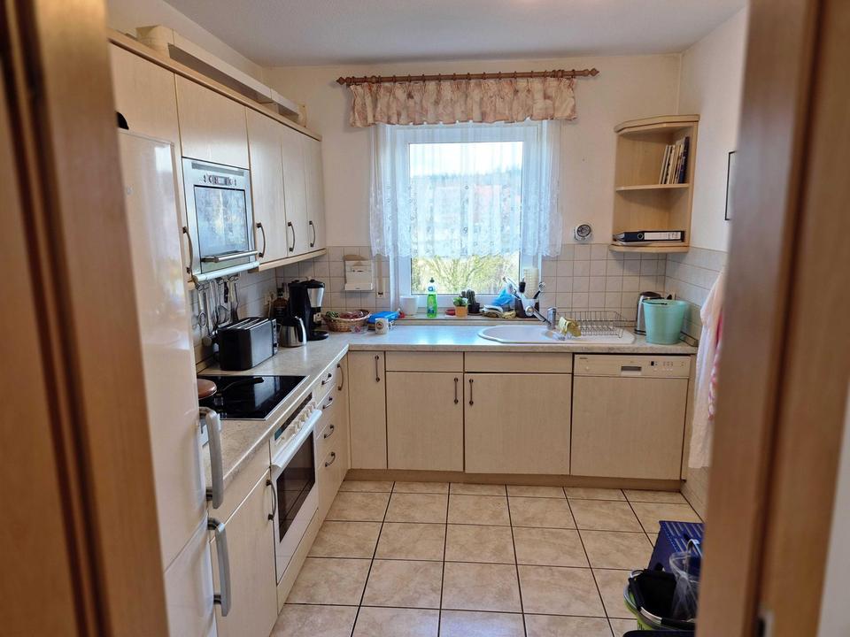 Objektbeschreibung: Eigentumswohnung im 1. OG eines gepflegten Mehrparteienhauses in ruhiger Lage in der Waldstadt von Hildburghausen Vom großzügigen Wohnzimmer betreten Sie den großen Südbalkon und genießen den Blick auf die Stadt und den Häselri…