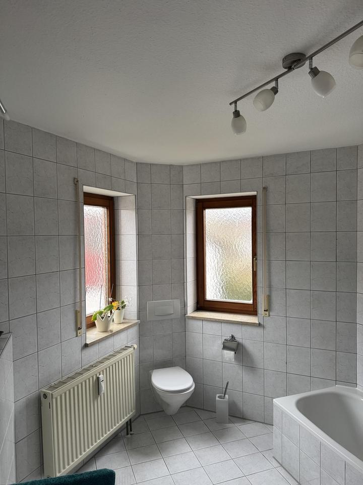 Neben einem Tageslichtbad steht ein Gäste-WC zur Verfügung, das derzeit als Abstellraum genutzt wird. Zusätzlichen Stauraum bietet ein großzügiges Kellerabteil. Zur Wohnung gehört außerdem eine Einzelgarage.