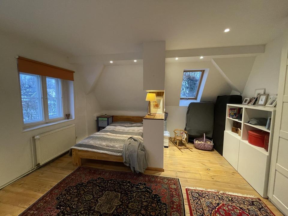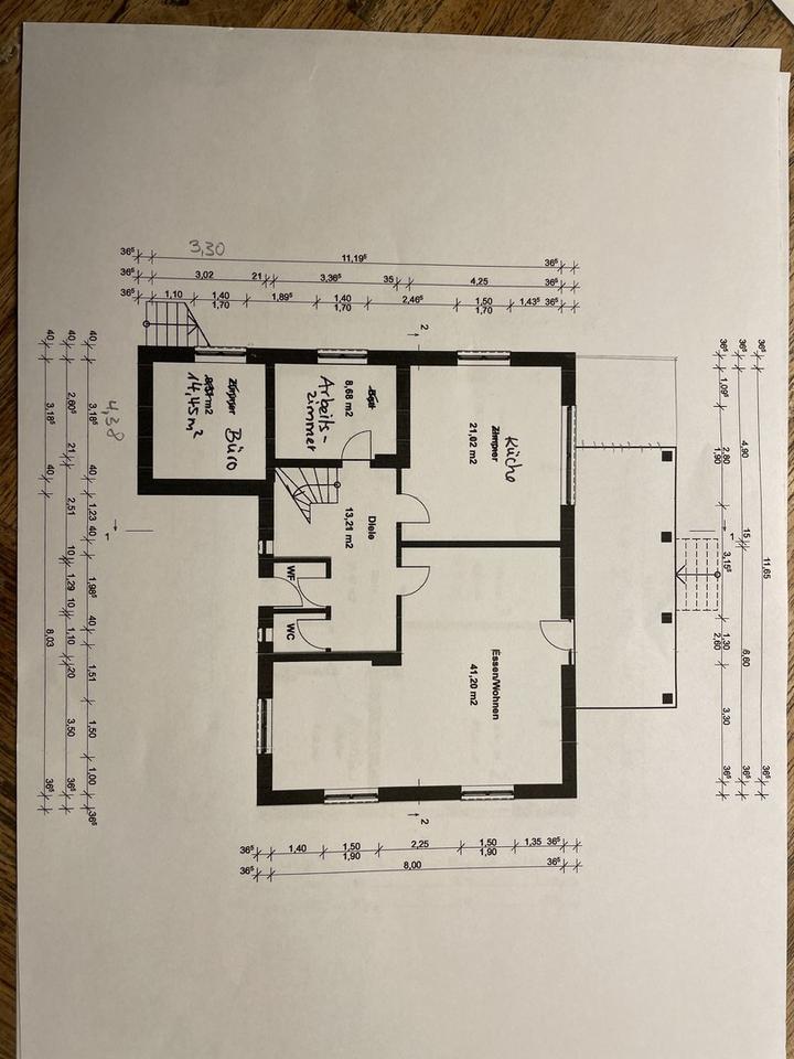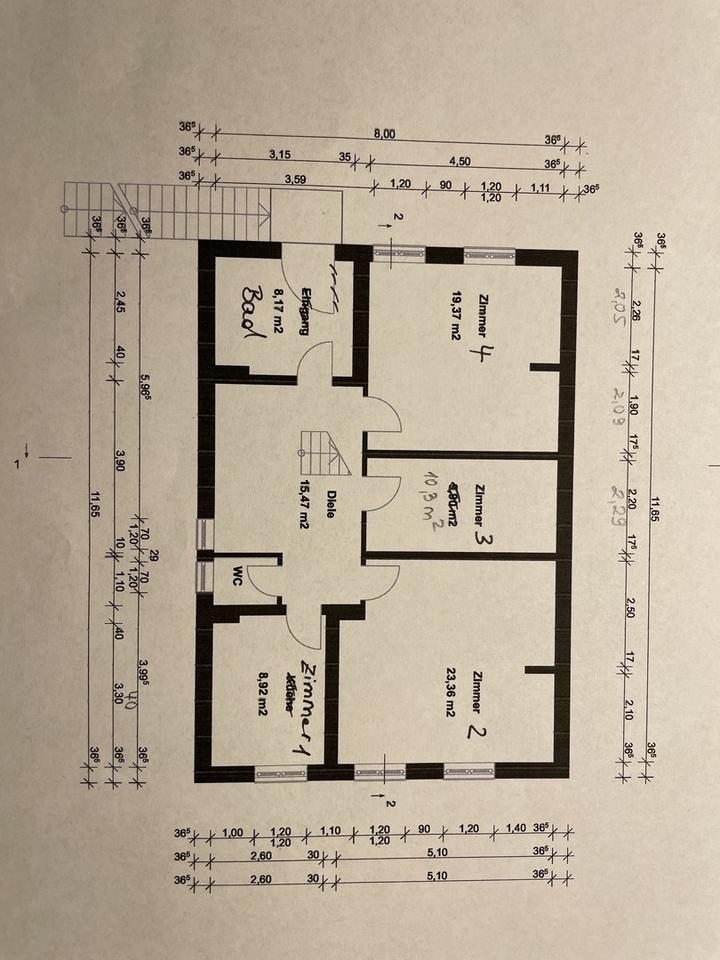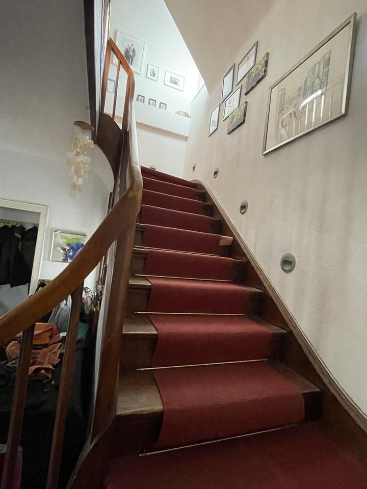 2011 Ausbau Dachgeschoss mit komplett neuem Dachaufbau, Dämmung, Dachflächenfenster und Ziegeleindeckung neuer Dielenboden im Wohnzimmer, Arbeitszimmer, Büro und Dachgeschoss, neuer Fliesenboden in der Diele, neuer Kokosläufer auf bestehender Holztreppe ins Obergeschoss, Abschleifen und Versiegeln vorhandener Dielenböden in allen Räumen im Obergeschoss