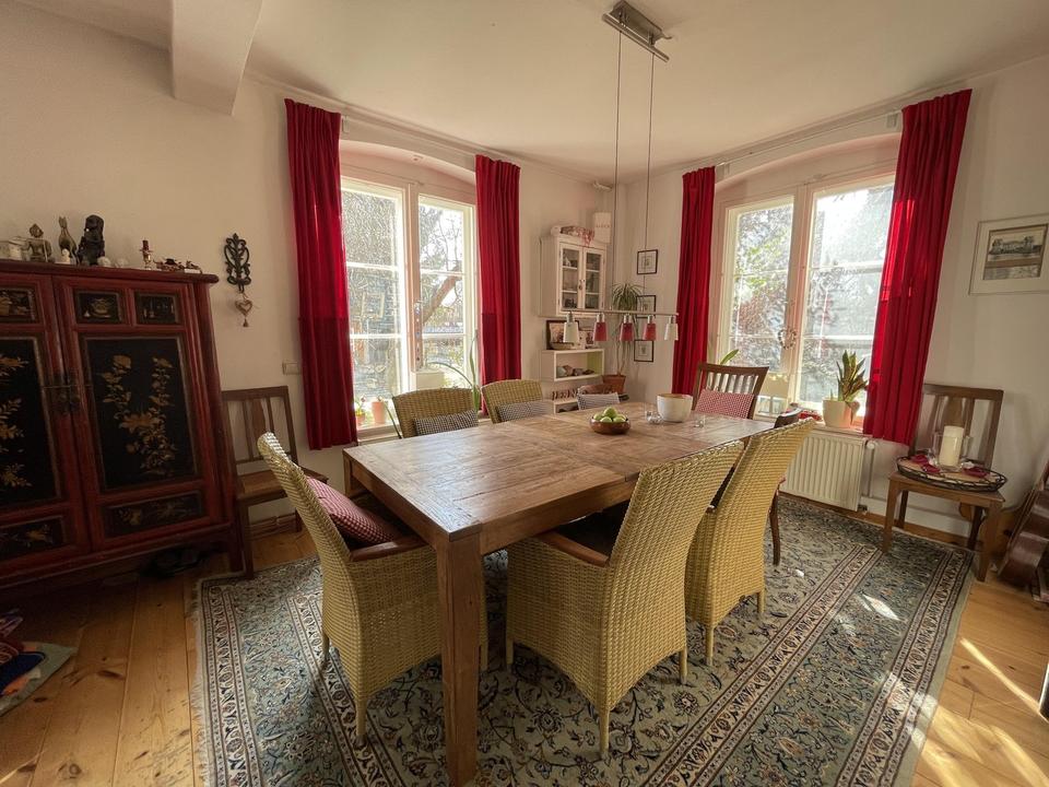 Bei Bedarf können nach Absprache auch einzelne Möbelstücke im Haus verbleiben. Der Terrassentisch mit einer massiven Natursteinplatte für bis zu 12 Personen ist bereits im Kaufpreis enthalten.