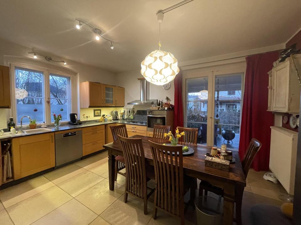 Terrasse, Garten, Keller, Vollbad, Duschbad, Einbauküche, Gäste-WC, Kamin, Parkett, Fliesen