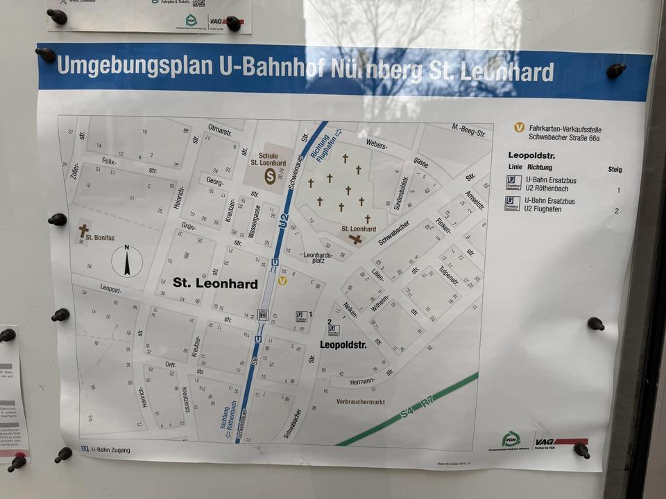 Die Wohngemeinschaft liegt in der Grünstraße in St. Leonhard. Die Wohnung befindet sich in belebter Wohnlage in Nürnberg. Zu Fuß von der Wohnung sind die Buslinien 68 und N8 und die U-Bahnlinien U2 und U3 ganz schnell zu erreichen. Überregionale Ziele kann man über die nahe verkehrenden Bahnlinien RE90 und S4 gut erreichen. In direkter Umgebung finden Sie einige Restaurants, Supermärkte, Bäckereien, Cafés und einen Friseur. Grün- und Parkanlage ist auch in der Nähe.