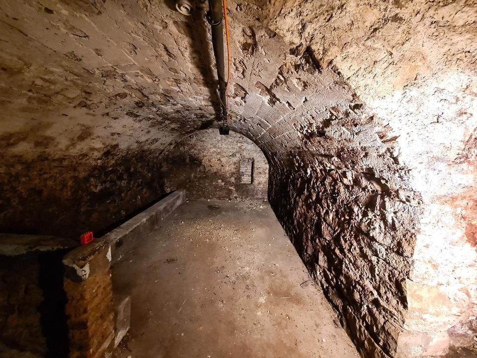 Der Gewölbekeller bietet zusätzlichen Stauraum und praktische Nutzungsmöglichkeiten. Dank des Zugangs über ein elektrisches Garagentor kann der Bereich auch als Stellplatz für kleine Fahrzeuge genutzt werden.