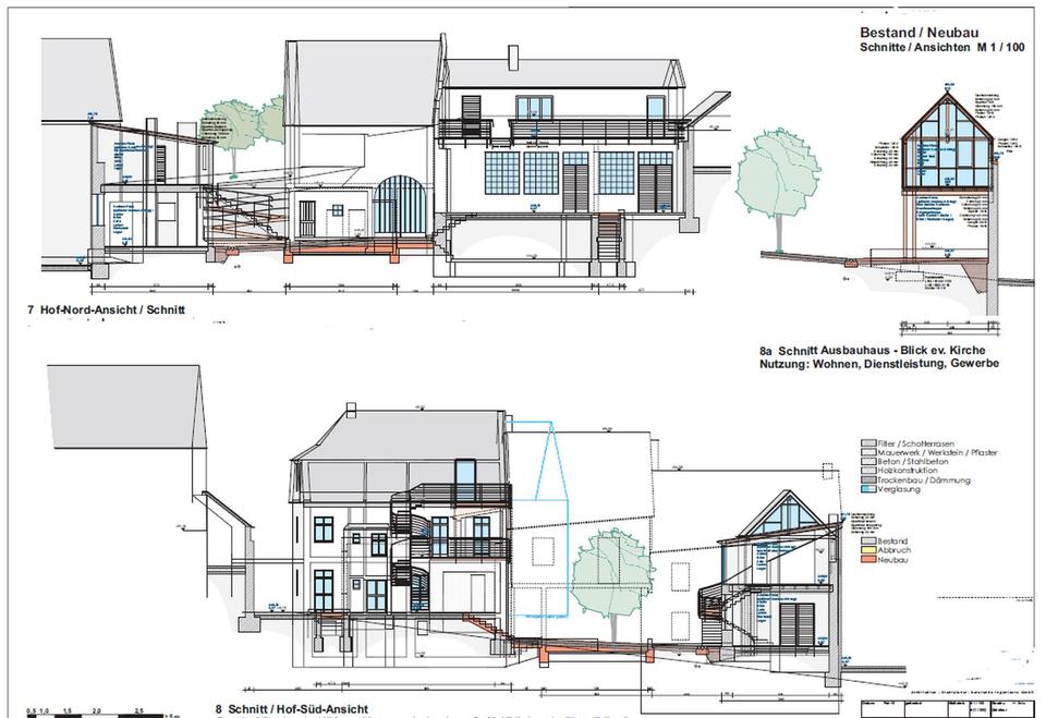 Die Gebäude wurden als Bäckerei und Metzgerei genutzt und sind zu wohnwirtschaftlicher oder betrieblicher Nutzung wiederherrichtbar. Denkbar wären bei derzeitiger Bausubstanz bis zu 8 Wohnungen (darunter Atelier- oder Loft-Wohnungen), Büros oder Kleingewerbe/Handwerk. Zusätzlich gibt es einen kleinen ruhig / sonnig gelegenen Nutzgarten.