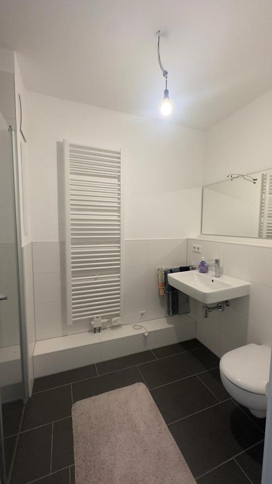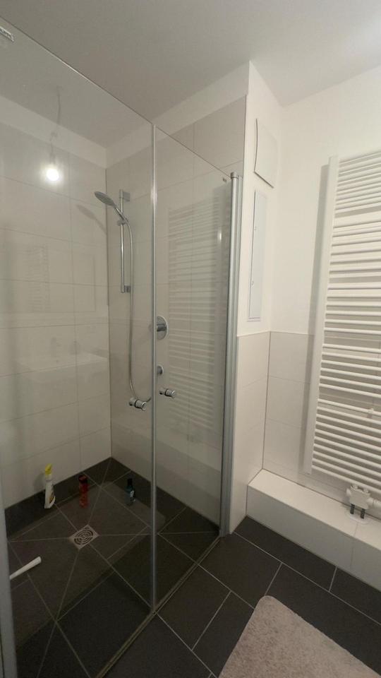Im Bad sehr gute Ausstattung mit bodengleicher Dusche und Duschkabine.