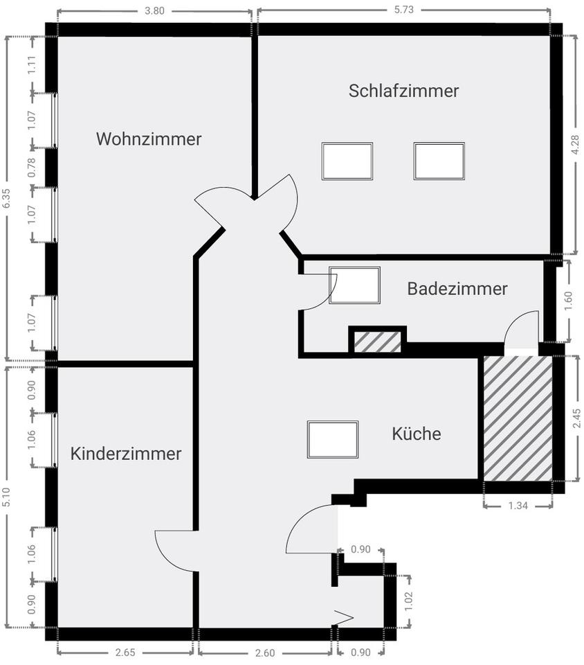Die Wohnung überzeugt durch helle, gut geschnittene Räume. Alle drei Zimmer sind separat vom Flur aus begehbar und bieten vielfältige Nutzungsmöglichkeiten – ob als Schlaf-, Kinder-, Wohn-, Arbeits- oder Hobbyräume.